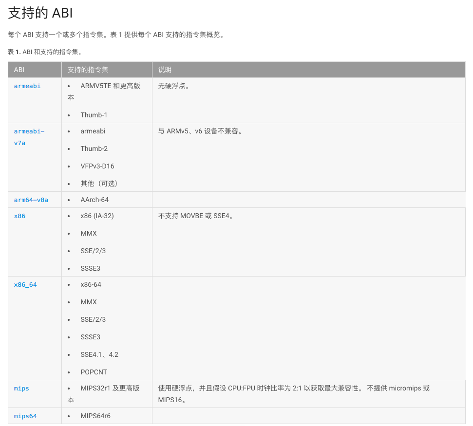 所以同样的程序代码为了兼容多个不同的CPU,需要为不同的 ABI 构建不同的库文件。